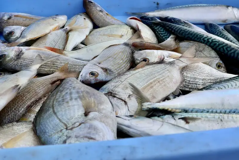 Vele soorten vis zoals Gamba's, Inktvis, Dorada, Schol, Lubina