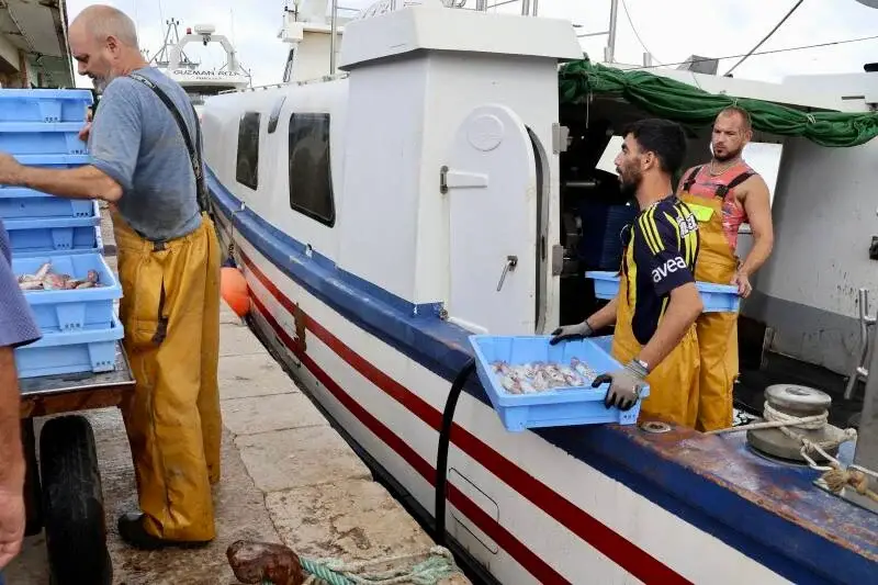 De boten met vis lopen binnen